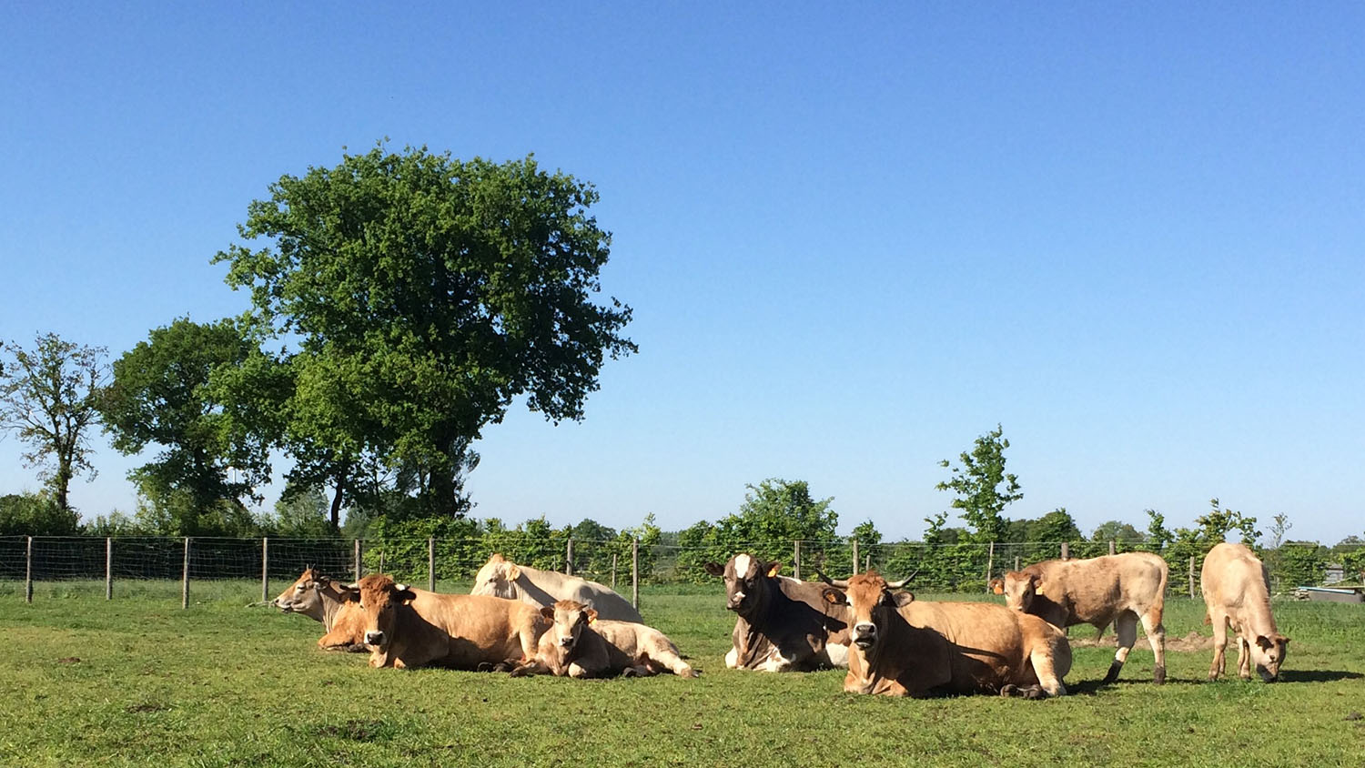 De keuze voor Blonde d’aquitaine en Aubrac koeien is voornamelijk de fijne structuur van het vlees.